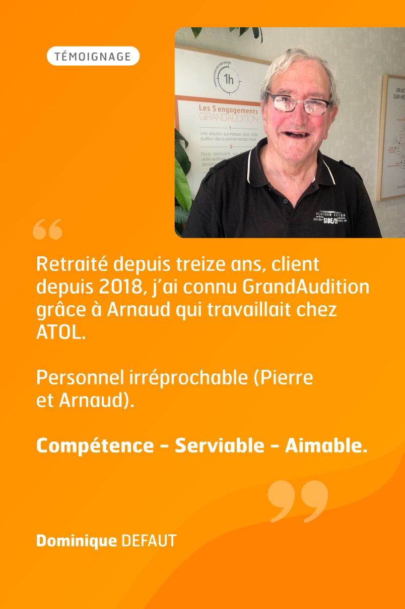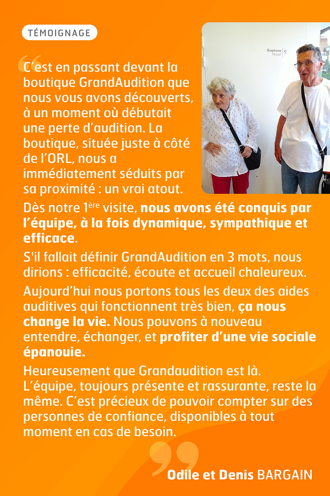Chez GrandAudition, la satisfaction de nos clients est au cœur de nos priorités. Chaque témoignage reflète notre engagement quotidien à offrir des soins auditifs de qualité, personnalisés et accessibles.